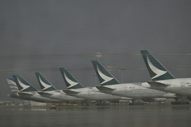 Cathay Pacific aircraft are seen outside the maintenance hanger at the international airport in Hong Kong on September 3, 2024