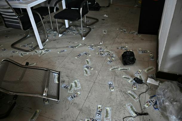 O’Smach (Cambodia) (AFP) - Broken computer monitors in bombed-out offices, scattered fake police uniforms and phoney hundred-dollar bills: these were the vestiges of a frantic escape of suspected cyberscammers fleeing a resort on the Cambodia-Thailand border.