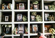 Rows of coffins line a university classroom in the South Korean port city of Busan, ready for use in training the …