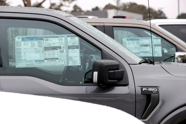 Ford pickups at a dealership in California. Automakers are keeping a wary eye on US demand since the outbreak of war in the Middle East