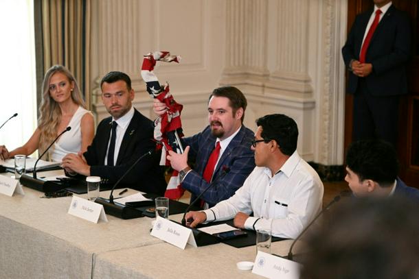 Washington (AFP) - Seated in the White House State Dining Room, US President Donald Trump called on far-right content creators to name and shame backers of Antifa, leading a roundtable discussion that quickly devolved into media bashing.