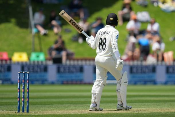 Conway was 55 not out at the break, cutting and driving to hit eight boundaries, with Rachin Ravindra on five as New Zealand reduced their first-innings deficit to 93 after resuming at 24-0.