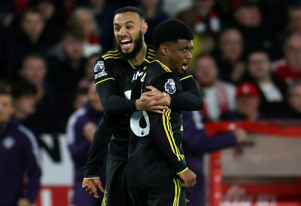 Manchester United forward Amad Diallo (right) celebrates scoring an equaliser against Nottingham Forest