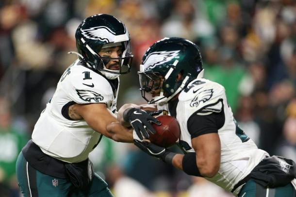 But the Eagles soared back into the lead with a 15-yard pass from Hurts to tight end Dallas Goedert.