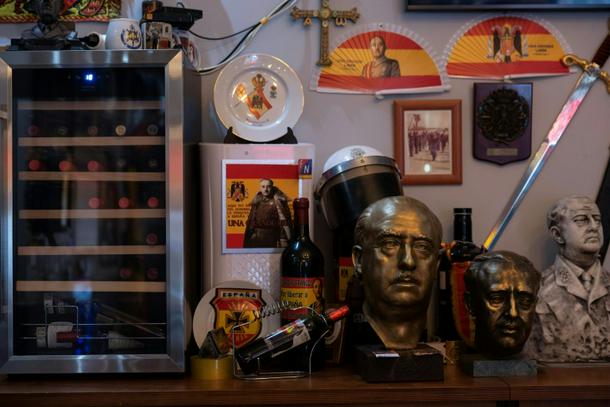 Francoist imagery and symbols are displayed inside a bar in Madrid