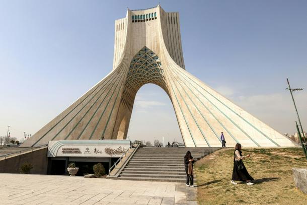 People walk near Tehran's landmark Azadi (Freedom) Tower in February before the United States and Israel launched a war a war against Iran