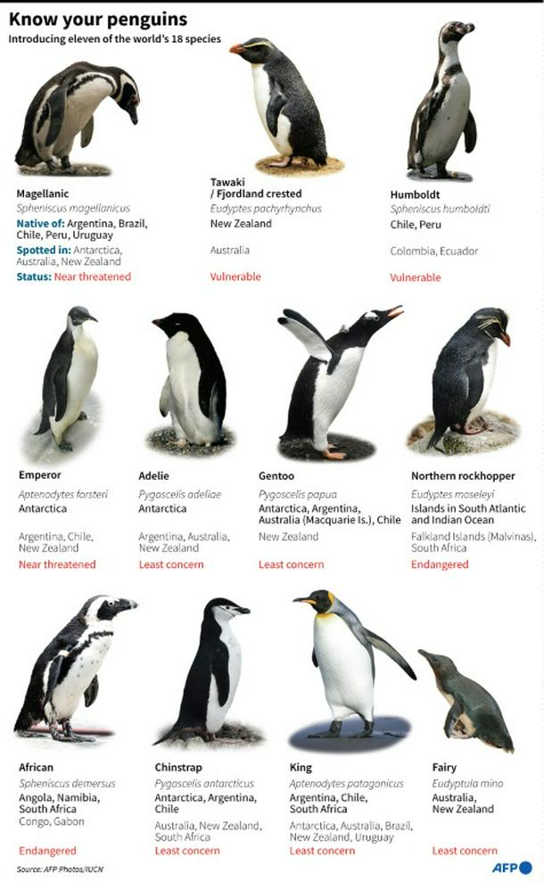 Graphic showing eleven of the world's penguin species.