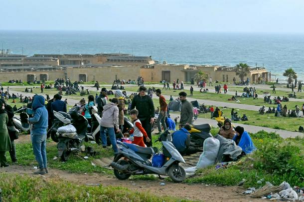 People who fled Beirut's southern suburbs after Israel warned to evacuate take refuge on the beach on April 9, 2026