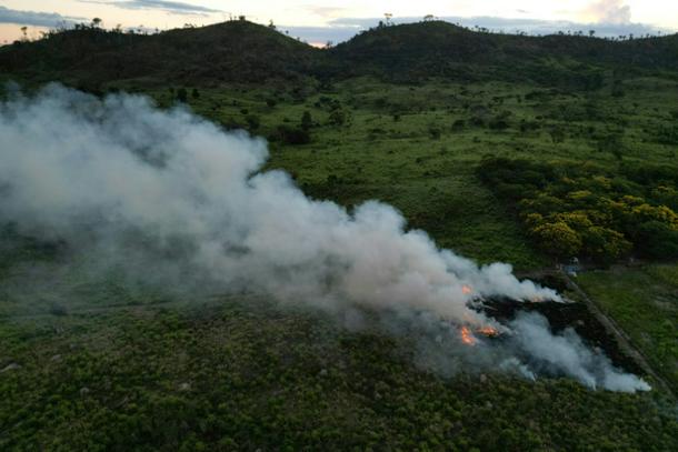 This aerial view shows a field fire in Sao Felix do Xingu, Para state, Brazil, on June 20, 2025