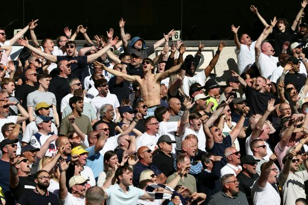 Tottenham fans celebrate their team's goal against Wolves