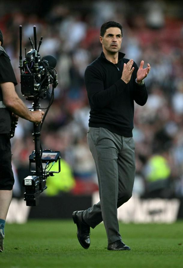 Arsenal captain Martin Odegaard applauds the fans after his team's 1-0 win against Newcastle